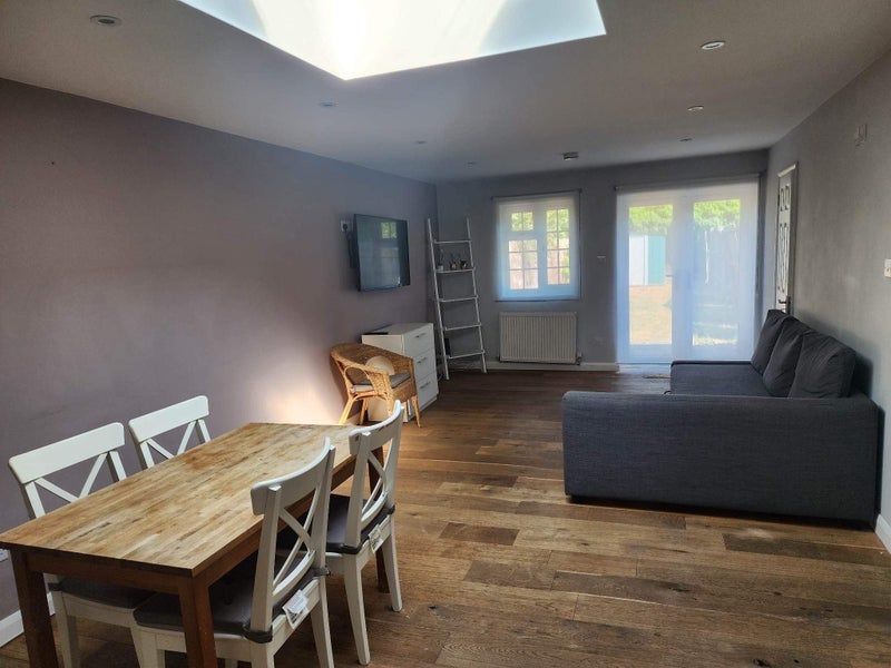 The available single room offers enough space for a double-sized bed, providing a comfortable and relaxing environment for residents. The shared living room is spacious and perfect for socializing or unwinding after a long day. The quiet neighborhood is conducive to studying or relaxing, making it an ideal space for those looking for a peaceful living environment. The overall feel of the flat is welcoming and cozy, with a friendly and loving couple as flatmates.