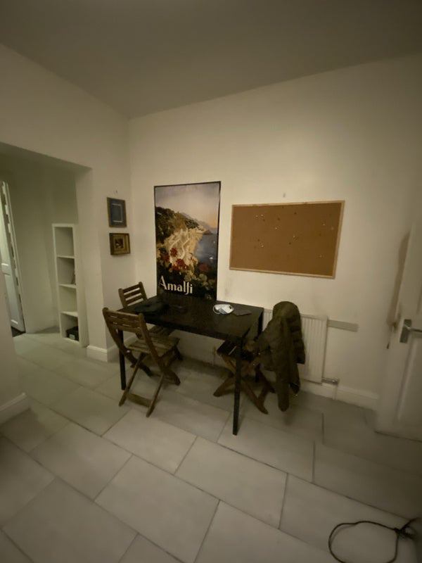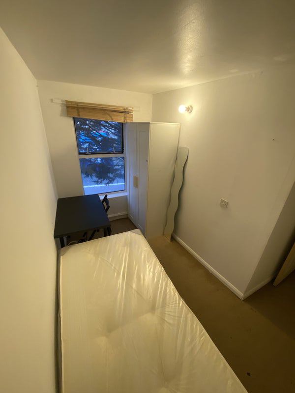 The single room in this flat is furnished with a double bed and wardrobes, providing comfort and convenience for residents. The fully fitted kitchen includes a washing machine and open plan layout, while storage spaces and a garden offer additional practicality. The atmosphere in the flat is harmonious, with a mix of male and female young professionals living together.