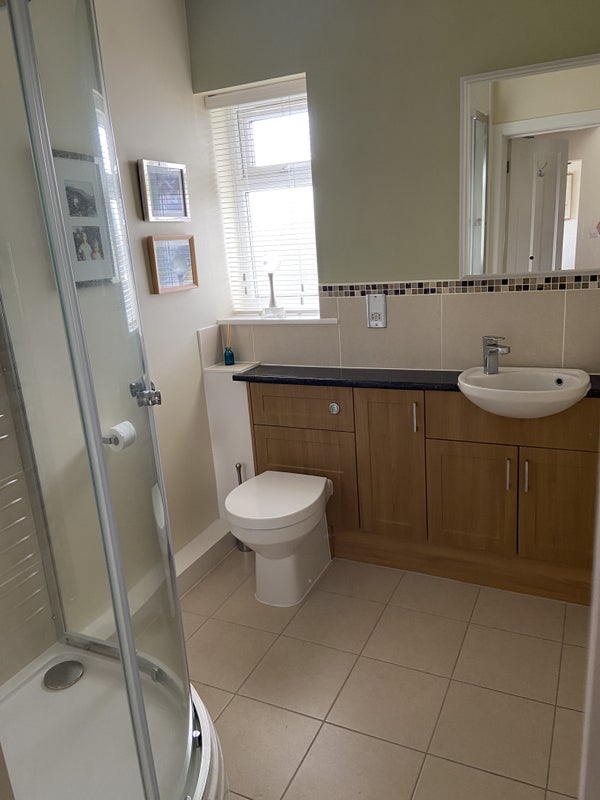 Located in Weeke, Winchester, this smartly presented double bedroom is available for rent. The property offers a furnished room with a double bed, wardrobe, drawers, bedside cabinet, desk, and chair. The room overlooks the front garden and comes with a private bathroom with a shower. The house is detached with a large front and rear garden, and there is a shared kitchen, diner, and utility room with a washer dryer. The kitchen is equipped with an induction hob, fridge freezer, microwave, and ample cupboard space. The property is situated in a quiet cul-de-sac, a 10-minute walk from shops in Stoney Lane and a 25-minute walk to the railway station. Parking is available on the property, and the landlord, who lives on-site, travels frequently. This accommodation would be ideal for a non-smoking single professional person.