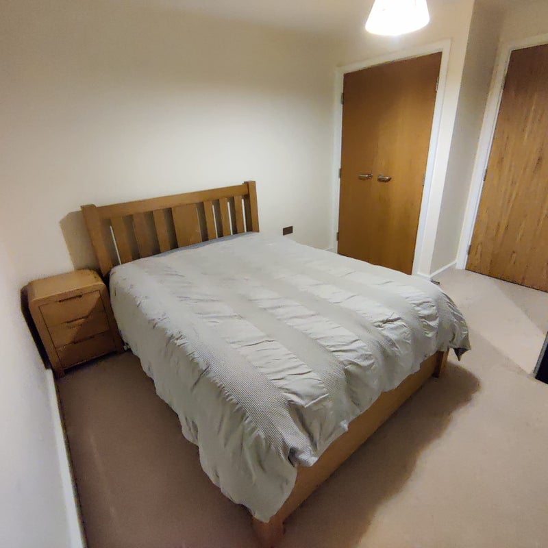 The double room in our flat is beautifully furnished with an ottoman bed featuring built-in storage, perfect for maximizing space. The flat boasts generous built-in storage throughout, ensuring a clutter-free environment. The modern kitchen is equipped with an oak dining set, a spacious fridge-freezer, dishwasher, and washing machine. The bright and inviting living room features an electrically adjustable double sofa, a 50-inch flatscreen TV, and plenty of natural light. Residents can also enjoy the large L-shaped balcony, perfect for relaxing or entertaining guests.