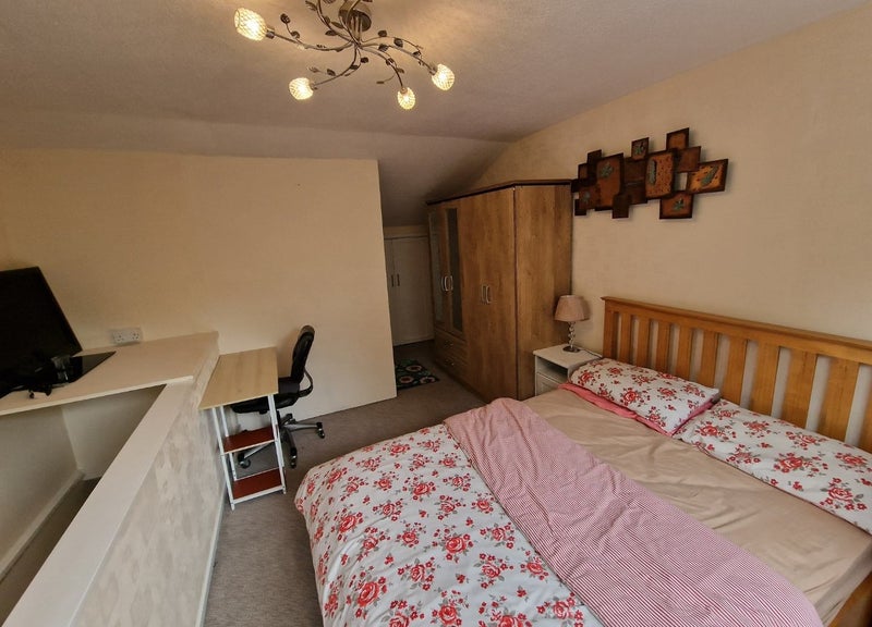 The available ensuite room on the top floor is spacious and comes with a double Ottoman bed with ample storage. The room offers privacy with a lockable door and a comfortable atmosphere for residents. Shared spaces like the lounge, kitchen, conservatory, and garden are well-furnished and designed for practicality and comfort. The housemates can enjoy the convenience of modern amenities and a cozy living environment.