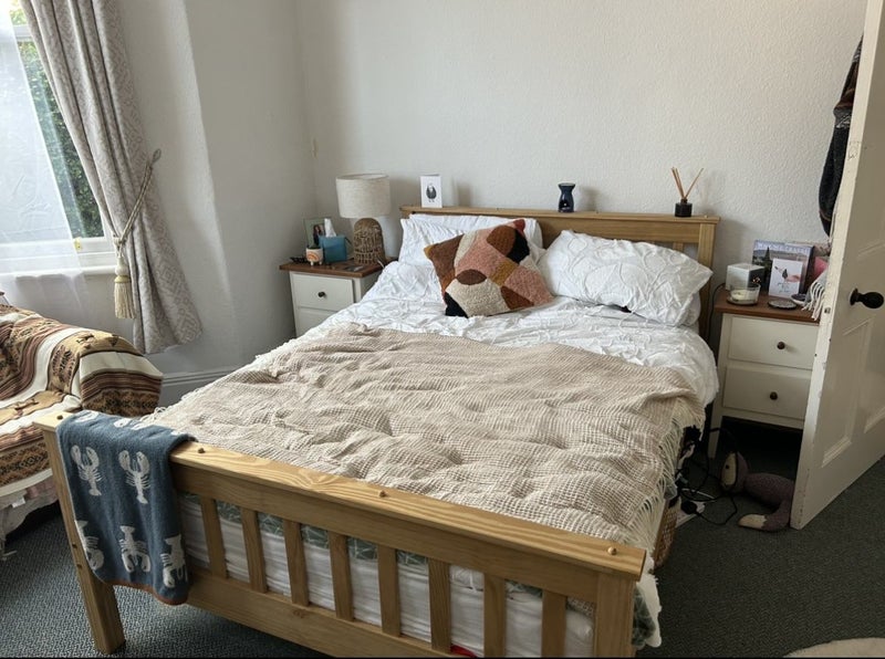 The available bedroom is spacious and comfortable, perfect for a single occupant. The flat features shared spaces like a cozy living room and a nice yard with a table and chairs, ideal for relaxing or socializing. The atmosphere in the flat is considerate and welcoming, with the current flatmates being friendly and easy-going. The cat in the flat adds a touch of charm, although she may surprise you with a worm or two as a present if she takes a liking to you.