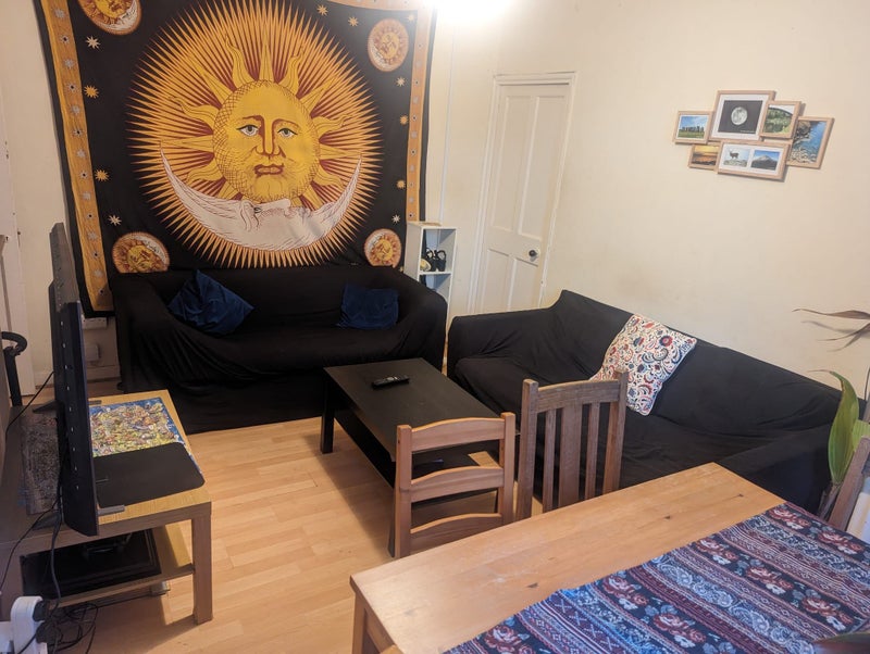 The available room in this flat offers a comfortable and practical living space, ideal for a working professional. Furnished with essential amenities, the room provides a cozy atmosphere for relaxation and productivity. The communal sitting room and small balcony offer additional areas for socializing and unwinding. The flatmates prioritize responsibility and cleanliness while fostering a friendly and laid-back atmosphere, ensuring a harmonious living experience for all residents.