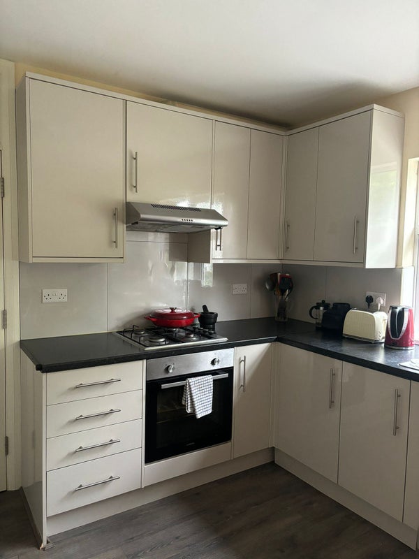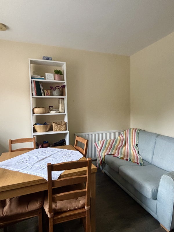 The available room is tastefully furnished and provides a comfortable living space for the resident. The shared areas of the house, including the kitchen and garden, offer a cozy atmosphere for relaxation. The overall feel of the space is clean, quiet, and perfect for unwinding after a long day. With only one flatmate, the living space promotes a sense of privacy and tranquility, ideal for a working professional seeking a peaceful environment.