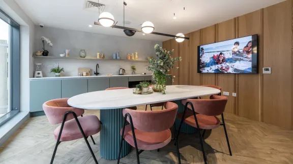 Located just a 5-minute walk from Queens University, this student halls offer the best value for money with a discounted rent of £177 compared to the standard rate of £190. The tenancy is for 45 weeks, ensuring you won't have to pay for the room during the summer break. The building, opened in 2022, boasts modern and luxurious amenities, including an en-suite room and a large kitchen/living room shared with 7 flatmates. The communal areas feature a gym, coffee bar, study rooms, and lounge areas, all included in the rent along with bills like wifi, heating, and electricity.