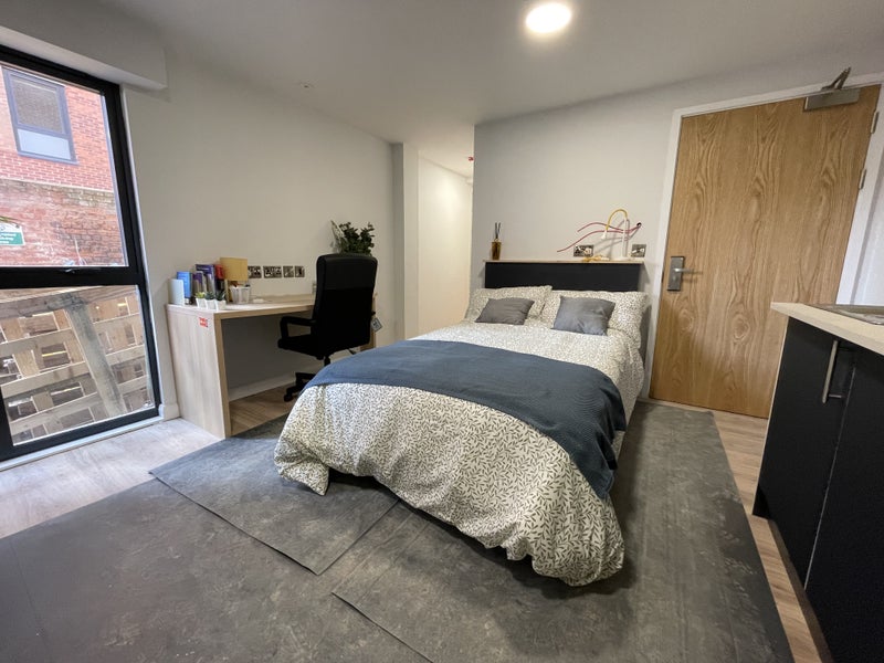 The bronze studio in this development offers a comfortable and modern living space for students. Furnished to a high standard, the room provides a cozy atmosphere for residents to relax and study. Shared spaces within the property are well-maintained and designed for practicality, ensuring a comfortable living experience for all flatmates. The overall feel of the flat is welcoming and conducive to both socializing and personal time.