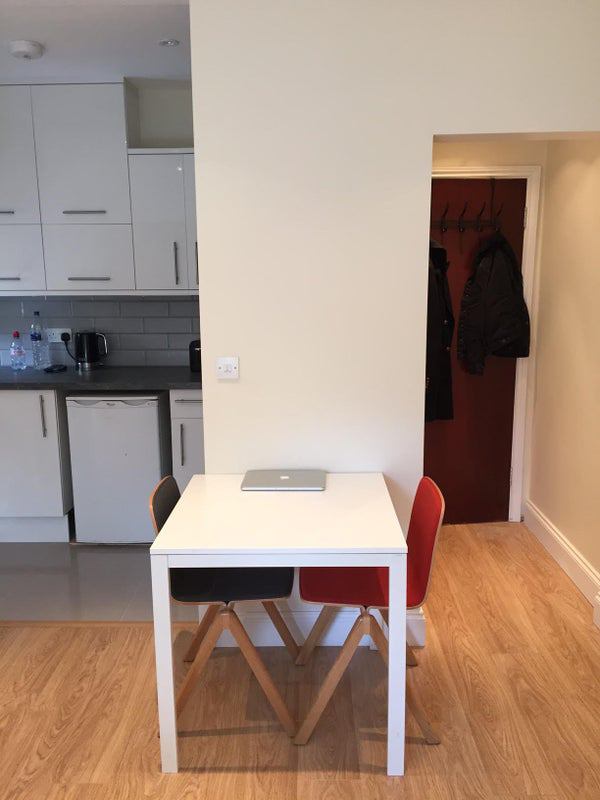 This non-shared, high-quality studio room is perfect for one person seeking a comfortable living space. The room combines a dual-aspect open plan living section with a sleeping area and kitchen/diner. It features its own private shower room and toilet room accessed via the hallway. Situated on the first floor, this SW-facing studio is bright all day with double-glazed windows and blackout blinds. The kitchen area boasts exquisite tiling, a full-sized oven, 4 hobs, extractor, fridge, sturdy table, and 2 dining chairs. The sleep area includes laminated wooden flooring, a large wardrobe, orthopedic mattress, and metal bed base. With superb electrics, plumbing, and lights, this studio offers comfort and convenience. Additionally, a fire safety system is in place for peace of mind, overlooking a peaceful SW-facing lush garden.