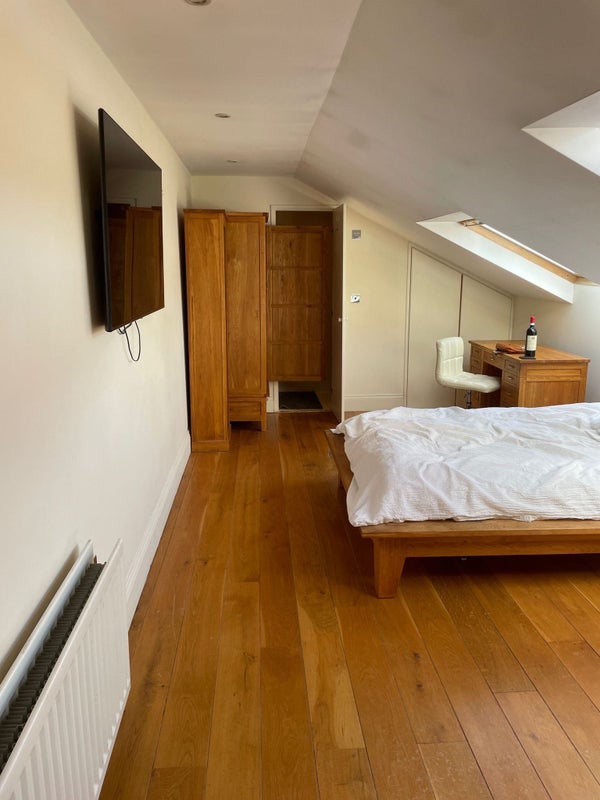 The available rooms in this house are tastefully furnished with double beds and en-suite bathrooms, providing residents with privacy and comfort. The smart TVs in each room and the living room offer entertainment options for relaxation. The overall feel of the space is cozy and inviting, with shared areas designed for both relaxation and socializing. The atmosphere of the flat is welcoming and conducive to a harmonious living experience.