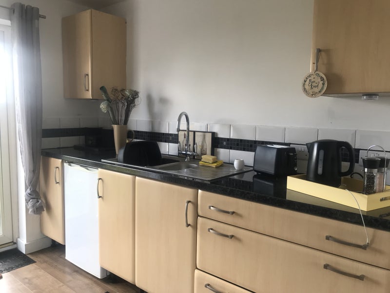 The property is a cozy annexe of the main house, offering a living area, bedroom, and kitchen space. While there is no hob for cooking, residents can utilize the provided microwave oven or bring an air fryer. Additional amenities include a toaster, kettle, TV, and Wi-Fi. The en-suite shower room adds convenience, and residents have access to the family garden. Parking for one vehicle is included. Nearby amenities such as supermarkets, takeaways, cafes, pubs, restaurants, a doctors' office, and a gym are within walking distance. The city of Norwich is a short 20-minute drive away, with a regular bus service available. The owner resides in the attached house and provides access to a washing machine.