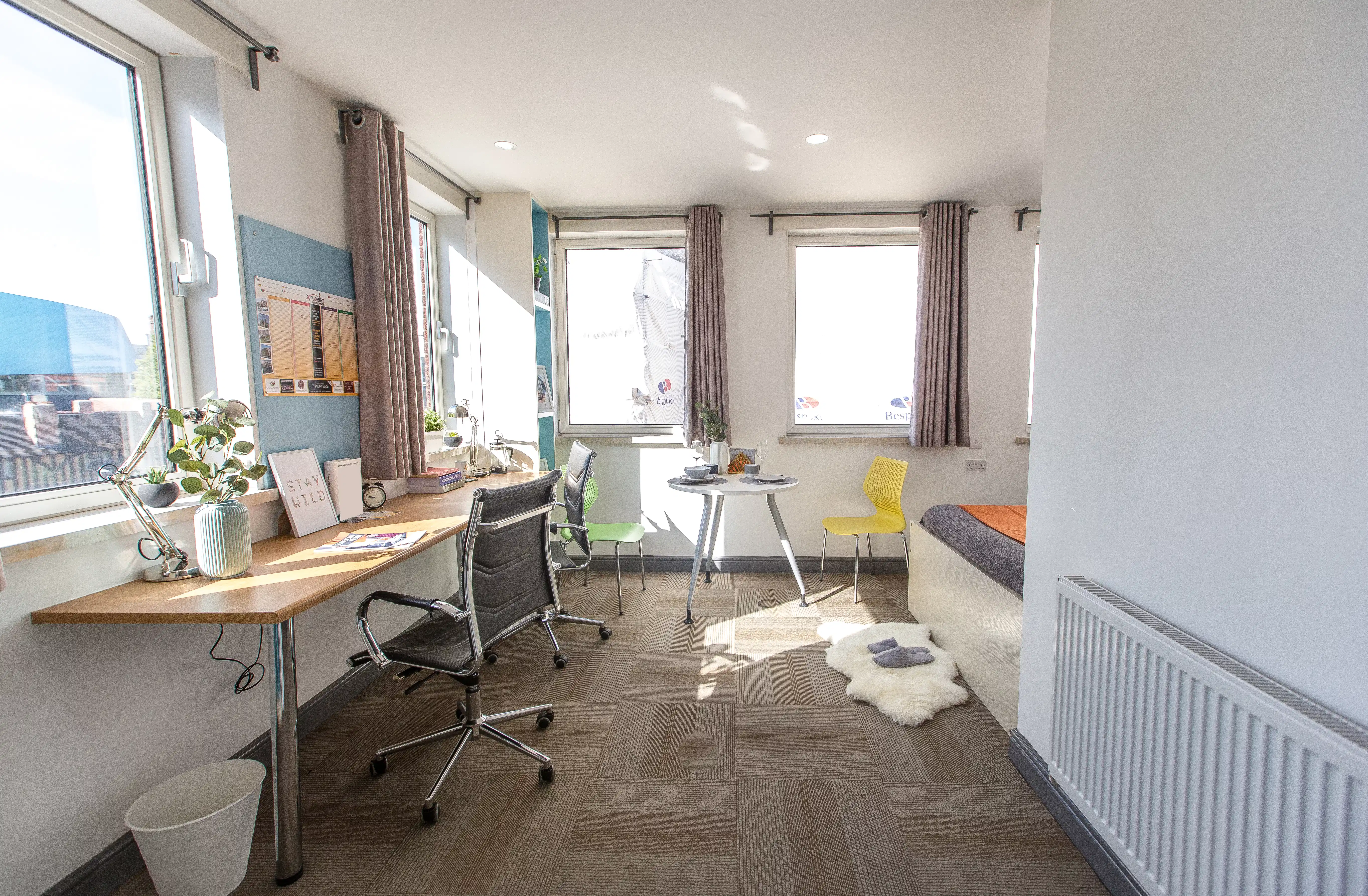 a) Studio Rooms - These room arrangements are best for students who want complete independence and privacy under reasonably priced, all-inclusive prices per week starting from GBP 175 to GBP 280. They include all the best amenities in a self-contained living space, including a private bedroom, bathroom, kitchen, and study space. The following are the available studio options: