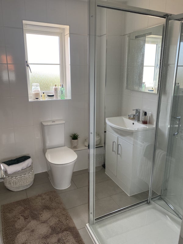 The room features a double wardrobe with ample hanging space, a 3ft bed with a new mattress, and a shared bathroom with a large separate shower cubicle equipped with a power shower. The room is finished to a high standard, providing a comfortable and cozy living space for residents. Additionally, residents have access to a private parking space at an additional cost and can enjoy the beautiful landscaped garden on the property.