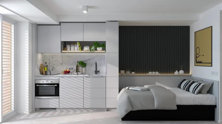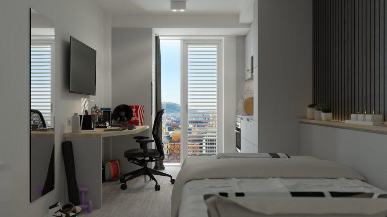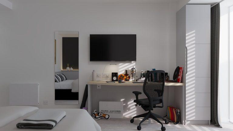Bed linen and towels are provided upon request.Capital of Northern Ireland, Belfast is becoming one of the coolest places to experience student life. It’s welcoming atmosphere, thriving city life, and beautiful surroundings are just some of the reasons why. This student Residence is perfectly situated for students at Queen's University Belfast and Ulster University, and within walking distance of the city's best spots. It is located in the heart of Belfast, with the city centre on your doorstep. You can choose between five room types. All studios include a kitchen, ensuite bathroom, study space and storage space.