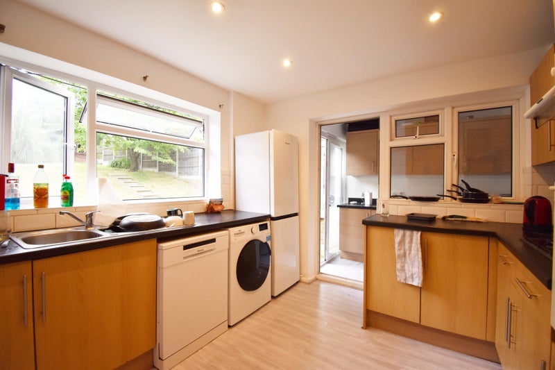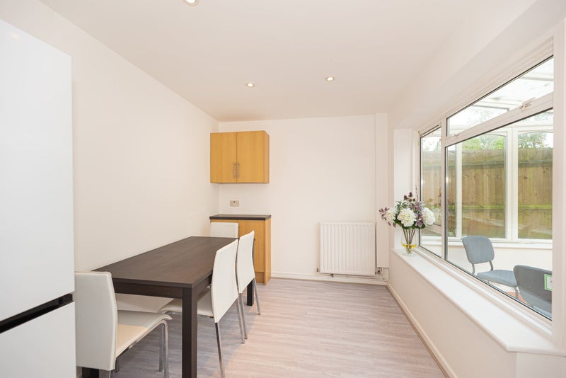 The room comes fully furnished with a double bed, wardrobe, chest of drawers, and a desk with a chair, providing a comfortable and private space for single professionals. Shared spaces include a spacious kitchen, a separate utility area, and a conservatory leading to a sunny garden. The bathroom is shared with just one other person, ensuring convenience and privacy for residents. A fortnightly cleaner is included for shared areas, and kitchen essentials like bin bags, spray cleaner, and kitchen rolls are provided.